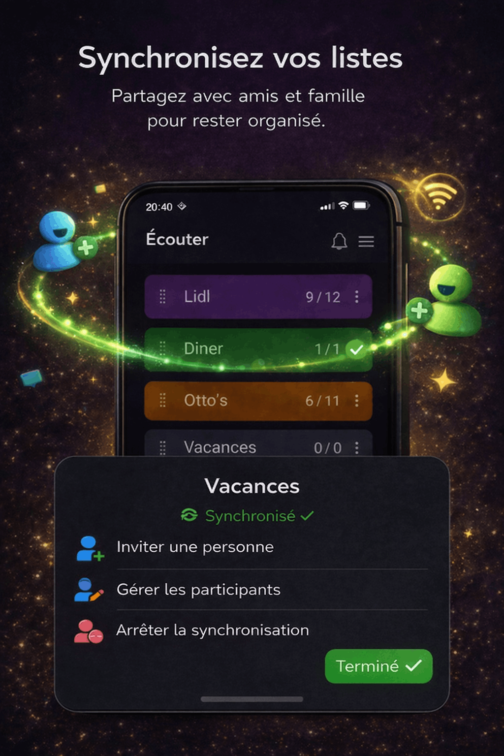 Listooo vous aide à faire vos courses et à rester organisé. Créez des listes en quelques secondes et recevez des rappels au bon moment.
